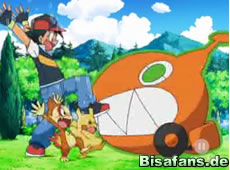 Vor der Villa greifen Pikachu und Pachirisu gemeinsam das Rotom an, was zu einem K.O. des Rotom führt. Dieses ist übrigens ziemlich klein Wie sich nun herausstellt, wollte Rotom die ganze Zeit nur spielen, auch wenn seine Art des Spielens offenbar daraus besteht, anderen Stromstöße zu verpassen. Dies führt unter anderem dazu, dass unsere Freunde alle ziemlich hippe Frisuren bekommen.