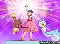 Und tatsächlich ist sie, Lucia und Jessibelle neben acht anderen Trainern in der nächsten Runde. Und nun geht es Runde für Runde immer weiter für die drei Koordinatoren bis Lucias und Urara in der Finalrunde sind. Nun heißt es Pachirisu vs Knarksel. Nach 2 Minuten sieht es nicht besonders gut aus für Lucia, sie hat wohl ein viertel mehr Punkte als ihre Konkurrenz verloren und hat breits insgesamt ein drittel ihrer Punkte beibüßen müssen. Pachirisu sieht auch stark geschwächt aus, doch es kann sich noch gegen die Gestein und Feuer Angriffe des Knarksel wehren und das gegnerische Team verliert Punkte. Die Zeit geht schneller um als gedacht und Lucia hat schließlich mit einem knappen Vorsprung noch gewonnen.
