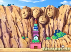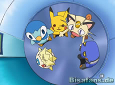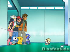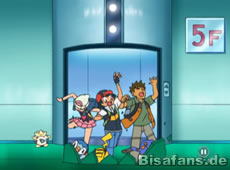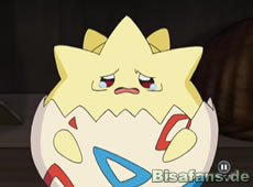Unsere Freunde versuchen sich unterdessen aus ihrem Gefängnis zu befreien. Glibunkels Attacken helfen hier zuerst nicht, doch als das Togepi vorbeikommt befreit es Ash und die anderen um sie nach einer Aufzugfahrt in eine andere Falle stürzen zu lassen. Dabei grinst es erneut fies.