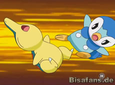 Während der Suche kommt es immer wieder zu Streiterein zwischen Feurigel und Plinfa. Als alle gerade das Marill finden, werden die beiden Streithähne von den anderen getrennt. Schuld daran ist übrigens Team Rocket, die für einen Kurzschluss im Kraftwerk sorgten. Unsere Freunde sitzen nun in einem Lagerraum fest. Weder Pikachus Donnerblitz noch ein Hilferuf in Richtung Überwachungskamera bringt etwas, da der Wärter mal wieder schläft.