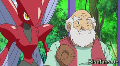 Der Flugkampfmeister nimmt anschließend Ashs (und Skorgros) Herausforderung an. Der ältere Herr, entscheidet sich mit seinem Scherox (welches wir schon kennen gelernt haben) gegen Ash zu kämpfen.