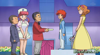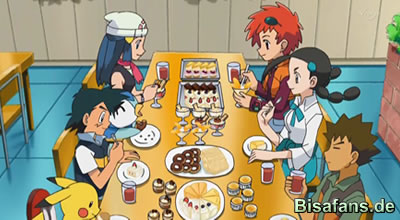 Alle verbringen die Nacht im Pokémon Center, am darauf folgenden Morgen schauen Ash und Rocko Tv – es läuft ein Interview mit Paul über seinen Sieg in der 8. Arena. Da Ash weiß dass Paul jetzt alle Orden für die Sinnoh Liga hat, wird er noch motivierter. Etwas später gehen Ash und Rocko mit Frida nach draußen um Lucia und Zoey beim Training zu zuschauen.