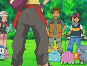 Das ganze Durcheinander wird erst gestoppt, als eine Trainerin erscheint und ihre Ditto (!) zurück zu sich ruft. Nun sehen alle auch, dass ihre Ditto Eins und Zwei sich so gut verwandeln können und auch unterschiedliche Farben haben (Blau und Rosa). Als sich die Trainerin als Narissa (Spitzname "Rissa") vorstellt, merken Ash, Lucia und Rocko, dass Narissa ein wenig aufbrausend und eingebildet ist. So bezeichnet sie Ash als "Anfänger-Streber", was ihm gar nicht gefällt. Dabei besitzt kann ja ohnehin nicht verlieren... meint sie.