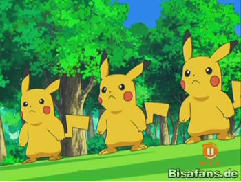 Gerade als Rocko alle zum Essen zusammenruft, kommt Plinfa auch schon als Erster angestürmt und macht sich über das Essen von allen (!) her. Als kurz darauf noch ein Plinfa erscheint, sind alle ziemlich irritiert. Die beiden Plinfas beginnen sich zu streiten, doch nur mit Kaumalats Draco-Meteor kann das echte Plinfa herausgefunden werden Leider erscheint nun auch ein zweites Togekiss. Lucia ruft ihr Togekiss zurück in den Ball. Als nun aber ein doppeltes Pikachu erscheint, gibt (sieht aber toll aus).