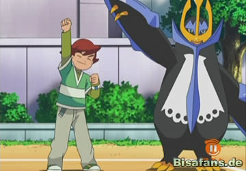 Am späten Abend trainieren Ash und Kenny im Garten. Dabei greift Bamelin versehentlich das Impoleon von Kenny an. Dabei schleudert die beiden am nächsten Morgen mit genau diesen Pokémon ihren Kampf auszutragen.