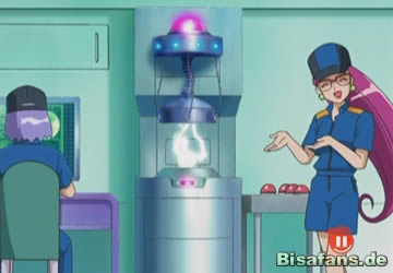 Kurz darauf ist Ash bei einer Transferstation angekommen. Dass hier wieder Jessie, James und Mauzi ein böses Spiel spielen, mit einem Donnerblitz von Pikachu Team Rocket zwar erwischen, doch fliegen dabei seine Pokébälle quer durch die Gegend.