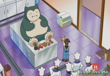 Die erste Suche ist zwar ergiebig und man findet alle fünf Bälle, doch sind keine Pokémon darin. Krebscorps und Karnimani können aber bei einem nahen Brunnen gefunden werden. Fehlen noch drei weitere Pokémon. Relaxo finden alle ebenso leicht, da es sich in einer Küche ordentlich bedient Bei den beiden letzten Pokémon merkt Ash, dass Professor Eich wohl ein falsches Skaraborn, was Ash wollte, saugt Bisasam und Professor Eich am Kopf bzw. an der Knospe herum.