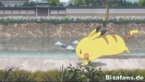 Ortswechsel nach Teak City in Johto, wo Pikachu drei in einem Bach schwimmenden Felino nachläuft. Von einem Ast, der über das Wasser reicht, greift es die Pokémon vergeblich an. Als diese zum Gegenangriff übergehen, verliert Pikachu das Gleichgewicht und fällt vom Ast. Bevor es aber im Wasser landen kann, kommt ein Lugia vorbei, auf dessen Rücken Pikachu landet.