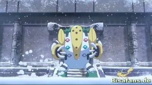 Am Blizzach-Tempel in Sinnoh liefert sich Pikachu einen Kampf gegen ein Voluminas. Das hitzige Gefecht wird jedoch unterbrochen, als aus dem Boden unter dem Tempel ein Regigigas erscheint. Nun greifen die vorherigen Kontrahenten des Legendäre Pokémon an, das sich aber gut zu wehren weiß.
