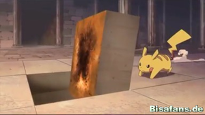 In Hoenn am Klimainstitut kämpft Pikachu gegen ein Muntier. Der Kampf verlagert sich auf eine nahe gelegene Holzbrücke, die aber durch die Wucht der Attacken in Mitleidenschaft gezogen wird und zusammenfällt. Beide Pokémon können sich noch retten, während Latias und Latios zusehen.