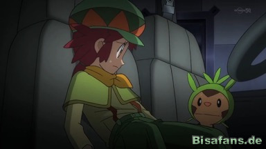 Währenddessen kommt Alain zu Michaelas Erleichterung wieder zu sich. Er ist von allem, was er sieht – Michaela und Mega-Rayquaza – vollkommen überrascht.