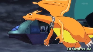 Dann aber wird Mega-Glurak X voll von einem Angriff Proto-Groudons getroffen und auf das Eis geschleudert, wo ein Brocken zerbricht und das Pokémon unter sich begräbt.