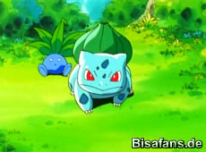 Bevor Ash gehen will, bittet Melanie ihn darum, das Bisasam mitzunehmen, da es sich hier im Wald nicht weiterentwickeln kann und nicht wachsen kann. Das Bisasam selbst stellt jedoch eine Bedingung: Es will in einem Kampf besiegt werden! Das läßt Ash sich nicht zweimal sagen und setzt sein Pikachu gegen Bisasam ein. Der Kampf dauert nicht lange, ist aber sehr erbittert. Zu Beginn kann Pikachu nichts gegen den mächtigen Rankenhieb von Bisasam machen, doch nach einem gewaltigen Donnerblitz ist Bisasam k.o. und wird von Ash gefangen. Ash hat damit ein neues Pokémon!
