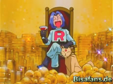 Unterdessen schlendert James vom Team Rocket durch das Schiff. Dabei wird er von einem Pokémon Händler angesprochen und davon überzeugt, daß ein Karpador ein sehr starkes und cooles Pokémon ist. Schließlich legt es 1000 Eier und entwickelt sich auch zum mächtigen Garados weiter. Tja, James fällt darauf rein und gibt das gesamte Geld in Form von 300 Poke-Dollar aus und besitzt nun ein Karpador… Als er Jessie mitteilt, daß er nicht nur sein ganzes Geld, sondern auch ihren Gehaltsvorschuß für das Karpador ausgegeben hat, zwingen ihn Jessie und Mauzi dazu das Karpador zurückzugeben. Doch bevor es dazu kommt, geschieht etwas anderes…