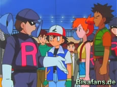 Dies lassen sich die Pokémon-Trainer jedoch nicht gefallen und setzten ihre Pokémon gegen das Team Rocket ein. Ganze Teams von Pikachus, Bisasams, Glumandas, Kleinsteins und Smettbos besiegen so in Null-Komma-Nix das Team Rocket. Ash plagt hingegen immer noch sein Gewissen und er will den Tausch Smettbo gegen Rattikarl unbedingt wieder rückgängig machen. Glücklicherweise ist Ash's Tauschpartner sehr kulant und auch bereit die Pokémon wieder zurückzutauschen. So erhält Ash also sein Smettbo wieder und verliert sein Rattikarl.