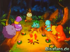 Unterdessen wacht auch Pikachu am Strand auf und befreit Bisasam,