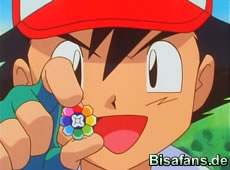 Erika ist verzweifelt – ihr Duflor ist noch in der Arena in den Flammen. Mutig, wie Ash nun einmal ist, geht es noch einmal in die Arena und kann Duflor sogar retten. Als Dank für die Rettung überreicht Erika ihm sogar den Farborden. Gut gemacht Ash – aber es warten noch weitere Abenteuer auf dich…