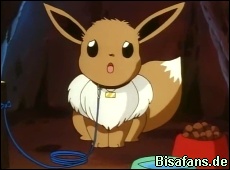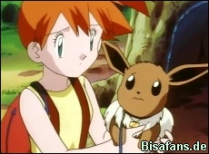 Unsere Helden kommen gerade aus einem Wald, da ist am Waldrand ein kleines Pokémon angebunden. Es hat zwar etwas zu Essen und zu Trinken, aber unsere Freunde nehmen an, dass es ausgesetzt wurde. Das Pokémon in ein kleines süsses Evoli und Misty schliesst es sofort ins Herz. Aber da es eine Marke mit dem Wohnort des Besitzers trägt, beschliessen unsere Helden in die nächste Stadt zu gehen und dort das Evoli abzugeben.