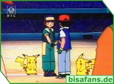 Ash schickt sein Pikachu in den Kampf, welches mit einem Risikotacke Happy fast besiegt. Doch erst eine finale Schockwelle in der Luft gibt Happy den Rest. Nun muß Richie sein zweites Pokémon in den Kampf schicken: Glumanda. Und Glumanda gelingt es auch sehr schnell Pikachu mit starken Feuerattacken einzuheizen. Das erschöpfte Pikachu hat keine Chance, so daß es kurz darauf auch k.o. geht…