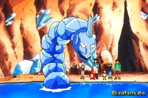 Kurz darauf entdecken Ash &Co. einen Höhleneingang. In der Höhle selbst funkeln zahlreiche Kristallsplitter an der Wand. Die eigentliche Überraschung wartet jedoch in der Höhle, als alle dort das legendäre Kristall-Onix entdecken! Wie in der Legende übermittelt, besteht das Onix komplett aus Kristall.
