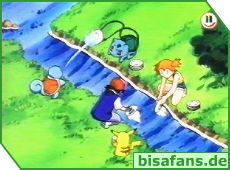 Beim anschließenden Abwasch des Geschirrs helfen auch einige Pokémon mit, Bisasam taucht mit seinem Rankenhieb das Geschirr in das Wasser des Flusses und hebt es wieder hoch, während Schiggy die Aquaknarre einsetzt um den groben Schmutz zu beseitigen.