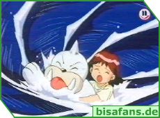 Die Prüfung besteht aus einer Bootsfahrt, bei der Ash mit seinen Pokémon mehrere Zielscheiben treffen muß. Natürlich meistert Ash diese Prüfung mit Pikachu, Schiggy und Bisasam problemlos. Nur als er kurz Glurak holt, wird es etwas "brenzlig"... Rudy macht sich übrigens immer noch an Misty ran und Misty scheint das ziemlich gut zu gefallen.