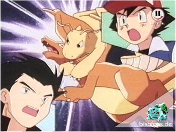 Wie erwartet ist Dragoran das letzte Pokémon und sicherlich der härteste Gegner des ganzen Kampfes. Glurak hat jedoch keine Chance gegen Dragoran. Seine Feuerattacken kontert Dragoran mit Wasser-Attacken und schwächt Glurak damit. Nur mit Mühe kann Glurak dem extrem schnellen und mit extrem gefährlichen Eisstrahlen kämpfenden Dragoran ausweichen. Doch alles hilft nichts – Dragoran besiegt Glurak und Ash bleiben immer weniger Pokémon.