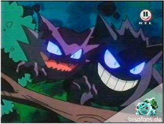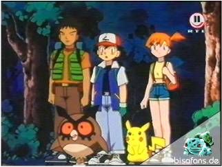 Ende der Probleme? Von wegen, nun ist Misty umzingelt von KäferPokémon, die sie ja so sehr haßt. Hoothoot kann jedoch in seinem unerfahreren Zustand nichts machen und flieht wieder. Nachdem Ash ihm jedoch ein wenig zugeredet hat, gelingt es Hoothoot seine Spezialattacke einzusetzen und enttarnt einige Gengar und Alpollo. Da Ash nun weiß mit wem er es zu tun hat, setzt er Bisasam mit seinem Rankenhieb ein bevor ein Donnerblitz von Pikachu die frechen GeisterPokémon verjagt! Nun geht es aber weiter.