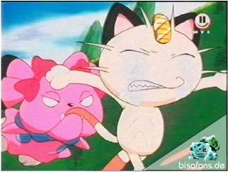 Team Rocket taucht natürlich auch auf und will in eine Villa einbrechen. Doch Snubbull als Wachhund beißt Mauzi einfach mal kräftig in den Schwanz Anschließend gelingt Team Rocket dank Smogmogs Rauchwolke die Flucht.