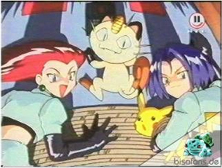 Pikachu gibt nach und läßt sich von Team Rocket gefangennehmen um das Gebäude zu retten. Ash kann leider nichts machen, da Mauzi ihn mit der Rakete unter Druck setzt. Zack's Knofensa gelingt es jedoch Mauzi die Fernsteuerung mit einem Rasierblatt aus der Hand zu schleudern. Schiggy und Bisasam schaffen es anschließend die Fernbedienung in Sicherheit zu bringen. Das Knofensa setzt Team Rocket weiterhin mit einer Rasierblatt-Attacke unter Druck. Doch Team Rocket versucht mit der Rakete zu entkommen und zündet diese manuell. In letzer Sekunde können Bisasam und Knofensa jedoch die Katastrophe mit einer weiteren Rasierblatt-Attacke verhindern und sorgen dafür, dass Team Rocket mit der Rakete davonfliegen, den Stützbalken des Turmes jedoch zurücklassen!
