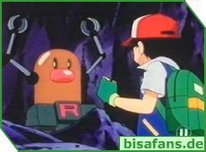 Team Rocket wird durch die plötzlichen Wassermassen unter der Erde herausgeschleudert, wo sie Ash auch mit seinem Pikachu erwartet. Ein weiterer Schuß in den Ofen für Team Rocket.