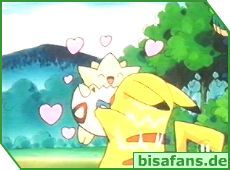 Ash setzt natürlich Pikachu ein, während Misty Togepi einsetzt! Pikachu will keine Attacke einsetzen, während Togepi Pikachu umarmt. Als Pikachu nach einer Liebesattacke wegläuft, gewinnt Misty die erste Runde. Ash entschließt sich nun für Endivie.