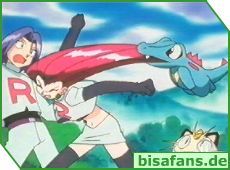 Team Rocket muntert inzwischen Mauzi auf und merkt gar nicht, dass Karnimani plötzlich bei ihnen aufgetaucht ist. Erst als das Karnimani Jessie beisst, merken sie es. Als sie es jedoch schnappen wollen, bekommen sie eine Aquaknarre ab und Karnimani freut sich