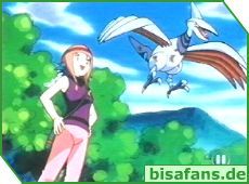 Nun probiert Ash sich mit seinem Feurigel. Doch Feurigel ist mal wieder nicht warm genug um seine Feuer-Attacken einsetzen zu können. So muss Feurigel die Sternenschauer hinnehmen, sowie weitere Attacken, bis es endlich warm wird und seinen Flammenwurf einsetzten kann. Doch Panzaerons Sternschauer schlägt Feurigel zurück. Da setzt Vicky die Finalattacke Stahlflügel ein... Bevor beide aufeinandertreffen, greift Team Rocket mal wieder ein und schnappt sich beide Pokémon mit zangenartigen Geräten um dann mit ihrem Ballon verschwinden zu wollen. Doch so einfach läßt sich Vicky ihr Pokémon nicht klauen – sie befieht Sternschauer, woraufhin Panzaeron sich befreien kann. Kurz darauf befreit Panzaeron auch das Feurigel von Ash, bevor sich alle einen ruhigen Abend in Vicky Haus machen.