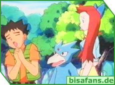 Unsere Freunde werden unterdessen von Trixie und ihrem Entoron besucht, die auf der Suche nach Azumarill sind. Rocko ist natürlich mal wieder ebenfalls verliebt, doch Misty bremst ihn wie gewohnt aus