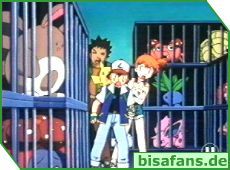 Unsere Freunde wollen gerade die Pokémon befreien, die Butch und Cassidy geklaut hatte, als diese auch sie zum Kampf stellen. Misty setzt dabei Quaputzi und seinen Duplexhieb ein, während Ash auf Karnimani setzt. Nach einem kurzen Kampf und dem Einsatz von Pikachu sind Butch und Cassidy besiegt und wandern wieder in das Gefängnis.