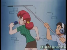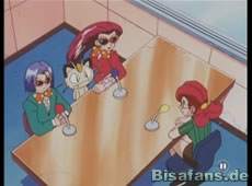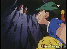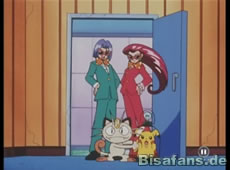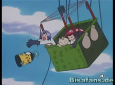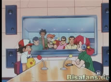 Die Story geht jedoch weiter. Team Rocket flieht, während Ash die Verfolgung aufnimmt. Margit kommentiert die rasanten Ereignisse natürlich Live für das gesamte Publikum. Nach einem Attackenwechsel zwischen Arbok und Endivie kann Pikachu Team Rocket mit einem Donnerblitz besiegen.