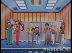 Ash, James, Jessie, Margit, Misty, Professor Eich, Rocko