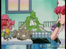 Als Team Rocket wieder merkt, was wirklich los ist, fliehen sie vor der wütenden Taubsi-Herde. Michael, Ash, Rocko und Misty können nun auch die Medikamente an das Pokémon Center liefern, die sich über die Lieferung freuen. Schwester Joy bedankt sich beim Opa von Michael für diesen tollen Service.