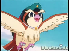Doch Noctuh und Ken lassen sich nicht austricksen und blasen die Wolken um Team Rockets Ballon mit einem Windstoss/Flügelschlag davon. Als sich Team Rocket weigert die Taubsis freizulassen schickt Jessie ihr Arbok in den Kampf (und hält es dabei fest, da es sonst herunterfallen würde). Noctuh setzt hierauf eine Hypnose ein und verwirrt Team Rocket, so daß es inzwischen die Taubsis befreien kann!