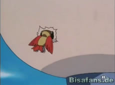 Um dies zu verhindern schickt Ash sein Noctuh los, welches Löcher in den Ballon reißt und den Käfig mit den gefangenen Pokémon fallen läßt, bevor Pikachu das Schloß davon mit einem Donnerschock öffnet. Es kommt nun zum Pokémonkampf: