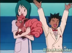 Kurz darauf finden sie auch Suzie. Während Vulpix auf Suzie losstürmt, ist Rocko etwas schüchtern. Doch Suzie lobt Rocko für die tolle Pflege. Dies ist auch der Moment, wo Rocko das Vulpix an Suzie wieder zurückgibt. Da kommt Suzie auf die tolle Idee gemeinsam mit Rocko und Vulpix am Wettbewerb teilzunehmen. Klar, daß Rocko hier zustimmt.