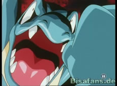 Als Duplica Jessie provoziert, schickt sie ihr Arbok gegen Minidit ein, welches daraufhin ordentlich eines auf den Deckel bekommt. Als James dann sein Smogmog eingesetzt staunen alle, daß Duplica nicht Konter befiehlt, sondern Spiegelcape.