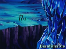 Unterwegs finden sie überraschend viele Pflanzen. Der eigentliche Remoraid See ist hingegen ausgetrocknet und beherbergt in der Mitte nur eine große kristallene Säule. Jessie bricht ein Stück ab – in der Hoffnung, daß es Diamant sei – um festzustellen, daß es nur Eis ist! Um nicht mit leeren Händen wegzugehen, schnappen sich Jessie und James nun das Pikachu von Ash. Natürlich kommt es dabei auch zu einem Kampf. Gerade als Jessie ihr Arbok einsetzt, schaltet sich jedoch Herr Gangoh ein und setzt sein Bisaflor ein, welches mit Arbok und Team Rocket kurzen Prozess macht.
