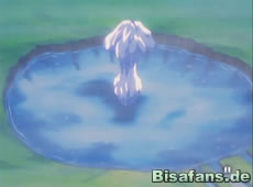An dieser Stelle lernen wir auch den Künstler Gangoh kennen, der extra alle 12 Jahre hierherkommt um das mysteriöse Regenbogenlicht zu zeichnen, nachdem er die letzten Jahre nie genug Farben dabei hatte. Als unsere Freunde erwähnen, daß sie das Licht auch gesehen hatten, zeichnet Schwester Joy auf einer Karte die beiden Positionen ein, von denen man das Licht sehen konnte. Dabei stellt sich heraus, daß das Licht wohl vom Remoraid-See kommen muß. Da betreten zwei angebliche Forscher das Pokémon Center und bitten Schwester Joy um Getränke. Daß es sich dabei um Jessie und James handelt weiß jedoch niemand. Auf jeden Fall beschließen alle zum Remoraid See aufzubrechen.