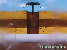 Nach dem Kampf wittern die Quiekel etwas und Georok gräbt erneut. Alle hoffen nun auf eine Warmwasserquelle und siehe da – es ist wirklich eine. Damit endet die monatelange Pechsträhne von Peggys Vater.