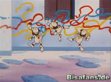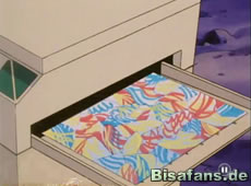 Die Bewohner reagieren darauf weniger erfreut und jagen die Farbeagle weg. Da verstecken sich die Farbeagle hinter unseren Freunden, was für einigen Streß sorgt. Glücklicherweise taucht kurz darauf auch der Besitzer der Farbeagle auf, der das Geschmiere als Kunst bezeichnet. Er entschädigt die Bewohner mit einem Blanko Scheck der First Johto Bank um den Schaden zu ersetzen.