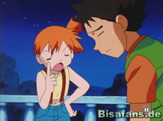 Beim Essen kommen jedoch auch unsere Freunde in den Raum und Misty erkennt die beiden sofort. Rocko bekommt jetzt erneut eine Krise, als er merkt, daß James seine Freundin bekommen soll. Enttarnt macht sich Team Rocket auf die Flucht mit den geklauten Pokebällen. Die naive Tevoltra versteht das alles nicht und hält es für ein Mißverständnis.