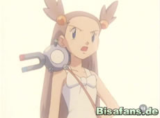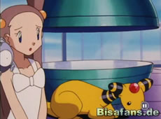 Im Park der Stadt treffen unsere Freunde wieder auf Janina, die gerade das Wachs ihres Onix mit Sand abschubbt. Sie wollte nicht schummeln, aber sie würde so gerne wie Ash sein. Rocko gibt ihr einige Tipps, bevor sie uns erzählt, daß Jasmin sich im Leuchtturm aufhält. Klar, daß Ash sich nun auf den Weg zum Leuchtturm macht um Jasmin zu fragen wann er denn einen Arenakampf bekommen kann.