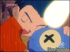 Am nächsten morgen gibt es einen ziemlich dichten Nebel, der sie aber nicht daran hindern kann endlich das Meer zu erreichen. Die Lampi freuen sich über die Wiedervereinigung, als alle plötzlich in eine Grube von Team Rocket stürzen. Smogmog sorgt mit einer Rauchwolke für Tarnung und Team Rocket fliegt mit ihrem Mauzi-Ballon davon.